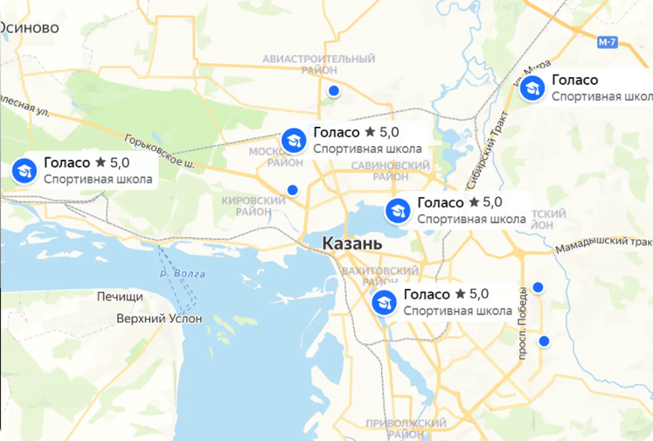 У нас 11 собственных филиалов в Казани и 3 в Набережных Челнах.